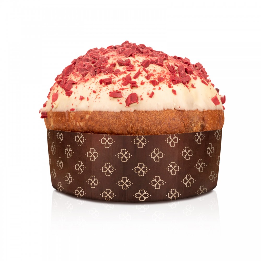 Panettone a lievitazione naturale con impasto imbrunito al cioccolato criollo. Le amarene e una delicatissima bagna liquorosa allo cherry arricchiscono il connubio con il cioccolato. Ricoperto di cioccolato pregiato criollo.