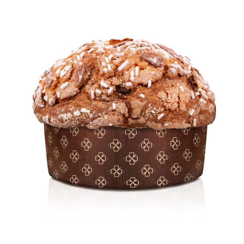 Panettone a lievitazione naturale arricchito con canditi di agrumi e gocce di cioccolato bianco, glassato con mandorle, pistacchi e scorze d'arancia.